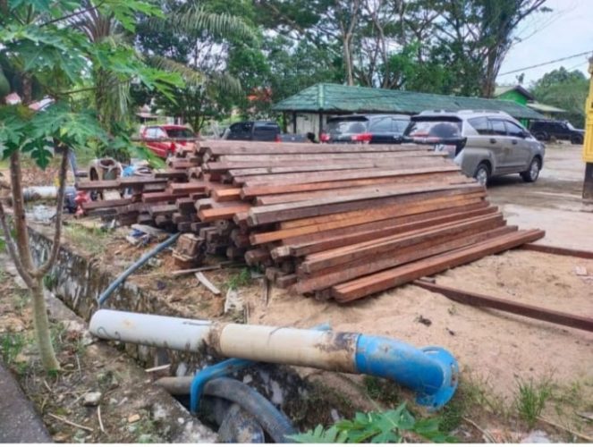 Ratusan kayu olahan jenis kayu Ulin tersebut berasal dari desa Kepingoi kecamatan Ambalau Kabupaten Sintang.