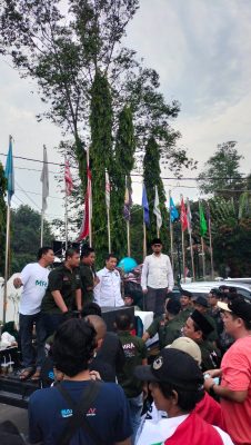 “Sahabat-sahabat semua yang hadir di sini tetap semangat yel-yel. kita nanti akan menampilkan pertunjukan debus dan tari-tarian,” sambung Cak Kholis.