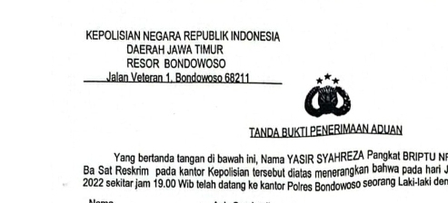 Persindonesia.com Bondowosoo 1 Nopember 2022- Berdasar pada laporan yang masuk ke Kepolisian Negara Republik Indonesia Daerah Jawa Timur Bondowoso, dimana diterangkan bahwa pada hari Jum’at tanggal 30 September 2022 sekitar jam 19.00 Wib telah datang ke kantor Polres Bondowoso seorang warga berinisial “A” (54 Thn), Melaporkan secara tertulis terkait dugaan terjadinya kekerasan terhadap anak di bawah umur inisial “RAS”.