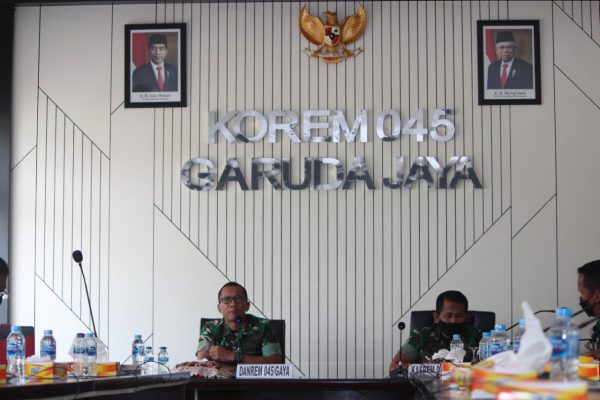 Rapat dihadiri oleh Kasrem 045/Gaya dan para Kasi Kasrem serta diikuti para komandan Kodim , Dan/Ka Satbalak secara virtual di jajaran satuan wilayah masing-masing.