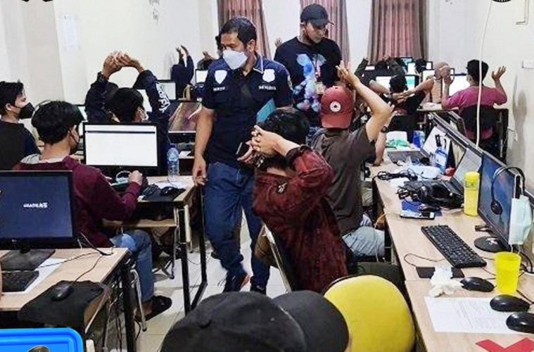 Barang bukti yang telah diamankan oleh polisi berupa 57 CPU komputer, 56 handphone, 2 unit laptop, dan 1 perangkat CCTV.