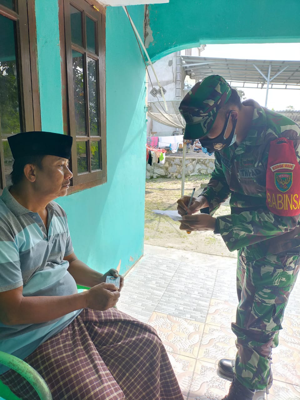 “Kegiatan pendataan ini dilakukan sesuai dengan aturan pemerintah bahwa selain disiplin protokol kesehatan (Prokes), penerapan dan penguatan 3 T (Testing, Tracing dan Treatment) juga menjadi kunci dalam upaya mengatasi penyebaran Covid-19,”Ujar Serda Yudisen.