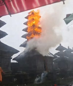 “Kobaran api yang membakar 3 pelinggih meru akhirnya berhasil dipadamkan hampir 1 jam lamanya. Dalam peristiwa kebakaran nihil korban jiwa, sedangkan untuk kerugian materiil dalam penyelidikan polisi”, terangnya.