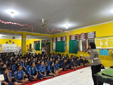 Denpasar – Unit Lalu lintas (Lantas) Polsek Denpasar Barat menggelar program sosialisasi Tertib berlalu Lintas di Sekolah SDN 7 Jl.Gn.Krakatau No.41 Kelurahan Pemecutan Denpasar Barat, pada Rabu (18/12/2024) pagi.