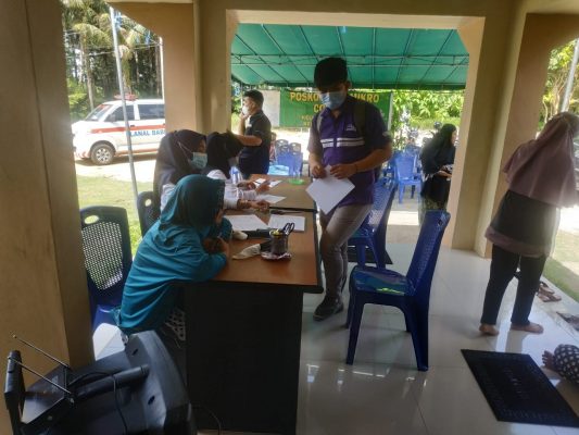Bangka Persinsonesia.com Pangkalan TNI AL Bangka Belitung melalui Balai Kesehatan bekerjasama dengan Dinas Kesehatan Kabupaten Bangka dan Puskesmas Belinyu kembali melaksanakan serbuan Vaksinasi dosis pertama, kedua dan ketiga kepada masyarakat maritim di Kantor Lurah Mantung Kecamatan Belinyu Kabupaten Bangka,Rabu 26/01/2022.