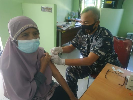 Bangka Persinsonesia.com Pangkalan TNI AL Bangka Belitung melalui Balai Kesehatan bekerjasama dengan Dinas Kesehatan Kabupaten Bangka dan Puskesmas Belinyu kembali melaksanakan serbuan Vaksinasi dosis pertama, kedua dan ketiga kepada masyarakat maritim di Kantor Lurah Mantung Kecamatan Belinyu Kabupaten Bangka,Rabu 26/01/2022.