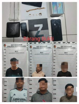 Pada hari kamis 20/10/2022 sekitar pukul 01.21 Wita Team Resmob berkoordinasi dengan Unit Buser Banjarmasin Selatan menangkap pelaku selaku penadah RD (18), dalam pengakuan dari keterangan pelaku RD mendapat Handphone dan membelikan kotak handphone terus di jual melalui shopee, dari pelaku satu satu nya perempuan IM (35) yang mana rumah mereka berdekatan,saat melakukan pengerebekan ada laki laki berusaha melarikan diri lewat pintu belakang, tapi berhasil d aman kan yang tak lain pelaku utama penjambretan, selanjutnya ke Enam pelaku di gelandang ke Polres Banjarbaru serta membawa barang bukti handphone dan emas.