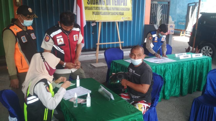 Terkait dengan pelanggaran patuh masker dalam operasi yustisi, langsung menjalani sidang di tempat yang diputus oleh Kejaksaan Pelabuhan Tanjung Perak Surabaya.