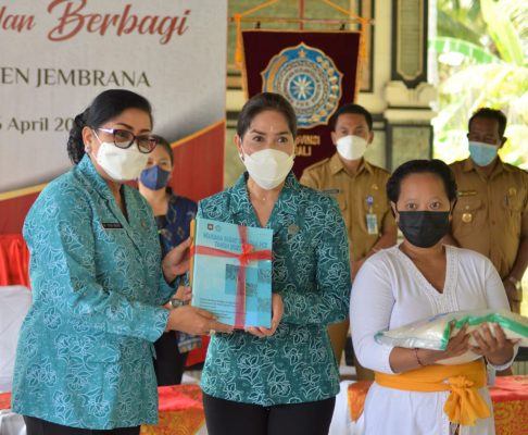 Persindonesia.com Jembrana – Ketua Tim Penggerak (TP) PKK Provinsi Bali Putri Koster didampingi Ketua TP PKK Kabupaten Jembrana Candrawati Tamba dan Ketua Gerakan Organisasi Wanita (GOW) Jembrana Inda Patriana Krisna melaksanakan aksi sosial berbagi dan berbakti di Kabupaten Jembrana yang dipusatkan di Wantilan Pura Puseh Desa Gumbrih, Senin (25/4).