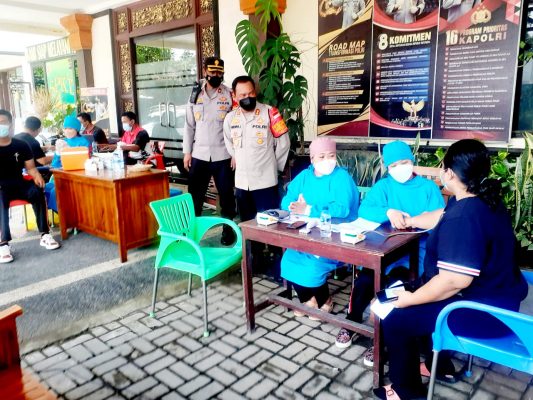 Dentim(Persindo) -Secara kontinyu Polsek Denpasar Timur(Dentim) bersama tim Kes Klinik Resta Denpasar kembali laksanakan giat vaksin booster di Mako Polsek Dentim (Minggu 20 Februari 2022) dengan menyasar masyarakat sekitar. Dilaksanakan sejak pukul 8 Wita / pagi hingga selesai.