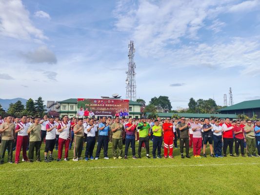 Tampak hadir pula jajaran puluhan personel dari TNI AL, TNI AU, Polri, Forkopimda dan TNI AD sebagai tuan rumah penyelenggara olahraga bersama.