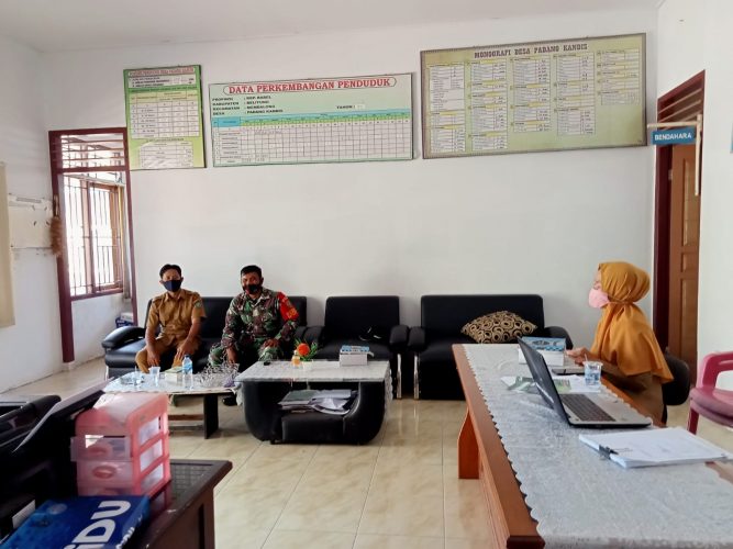 Terpantau Sertu Yusup Personil Koramil 04/Membalong melaksanakan kegiatan Komsos dengan Aparat Desa Padang Kandis bertempat di Kantor Desa Padang Kandis Kecamatan Membalong.