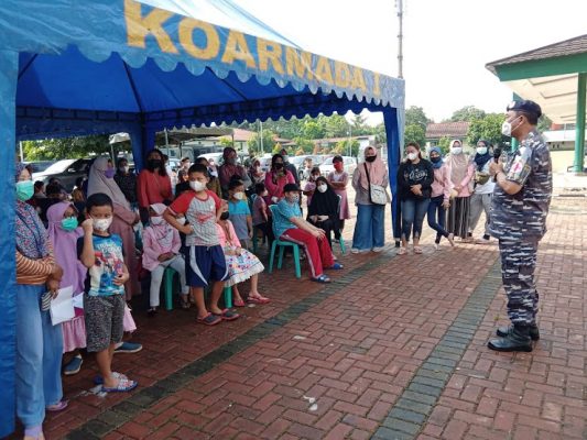 TNI Angkatan Laut dalam hal ini Koarmada I kembali melaksanakan serbuan vaksinasi Covid-19 bagi anak usia 6-11 tahun, di Komplek Perumahan TNI AL Ciangsana Bogor, Rabu (29/12/2021).