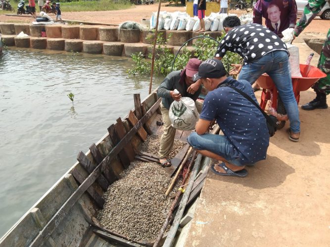 Dengan pendampingan Babinpotmar bibit kerang di bawa menuju Desa Pusuk Kecamatan Kelapa Kabupaten Bangka Barat menggunakan truk, selanjutnya bibit kerang di serahkan kepada kelompok nelayan Pusuk Kelabat Jaya I dan kelompok Beting Tengah untuk di sebar ke lokasi budi daya milik masing masing nelayan.