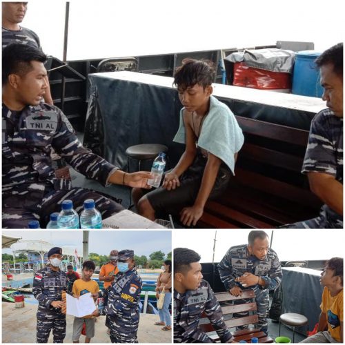 “Anak tersebut berusaha mempertahankan daya apungnya berenang tanpa arah karena sekelilingnya tidak terlihat daratan. Oleh tim rescue dinaikan ke atas sekoci selanjutnya dibawa menuju KRI Sembilang-850 untuk dilaksanakan pertolongan pertama,” ungkap Mayor Nanang.