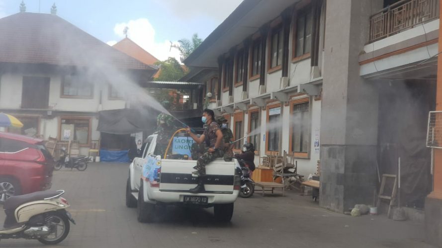 Gianyar Bali – Setelah melaksanakan penyemprotan eco enzyme di wilayah Desa Peliatan, Ubud minggu (17/07) lalu. TNI dalam hal ini Korem 163/Wira Satya bersama Yon Zipur 18/YKR serta relawan Komunitas Eco Enzyme kembali menyemprotkan 5000 liter cairan eco enzyme di sepanjang kawasan pariwisata Ubud, Gianyar, Jumat (23/07/2021).