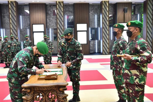 Kepala Staf TNI Angkatan Darat Jenderal TNI Dudung Abdurachman, S.E., M.M., hari ini memimpin acara serah terima jabatan Pangdam Jaya/Jayakarta, dari Mayor Jenderal TNI Mulyo Aji, M.A. kepada Mayor Jenderal TNI Untung Budiharto, bertempat di Aula Jenderal Besar A. H. Nasution, Lt. III Mabesad, Jakarta Pusat, Senin (10/01/2022).