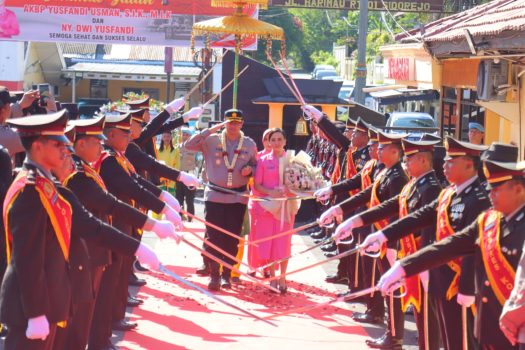 ‎Mapolres Kobar melaksanakan tradisi adat berupa tampung tawar dan potong pantan sebagai penyambutan Kapolres Kobar beserta ibu Ketua Bhayangkari Cabang Kobar yang baru.