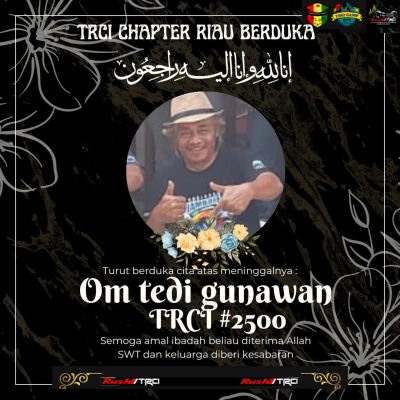 Sementara itu, Ketua Umum TRCI Pusat Om Erland mewakili Pengurus Pusat menyampaikan, Telah Berpulang ke Rahmatullah sahabat kami Om Tedi Gunawan anggota TRCI Chapter Riau, Semoga Almarhum Husnul Khotimah, diampunkan segala dosanya, diberikan tempat terbaik dan keluarga yang ditinggalkan diberikan kekuatan..Aamiin Yra.