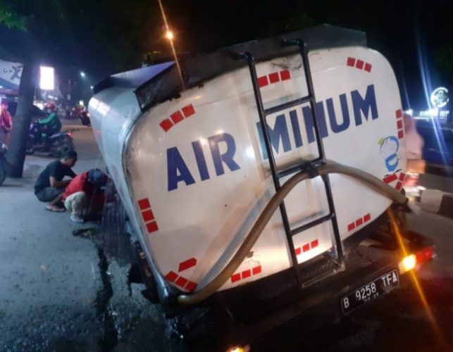 Tangerang,Persindonesia.com – Truk tangki air bersih amblas di salah satu galian pipa yang diduga milik PDAM Tirta Benteng Kota Tangerang, di Jalan Ampera Raya arah Poris Gaga, Kota Tangerang, Banten.