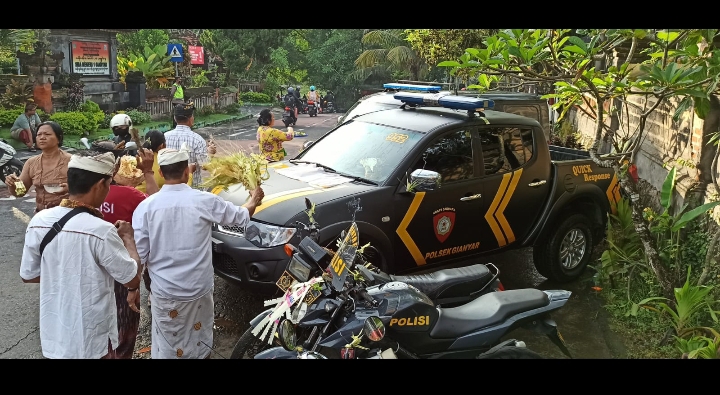 Gianyar – Bertepatan dengan perayaan hari Tumpek Landep, Polsek Gianyar melaksanakan Upacara penyucian alat yang berbahan baku dari logam seperti kendaraan dinas, senjata api maupun peralatan lainnya, Sabtu (5/11) pagi.