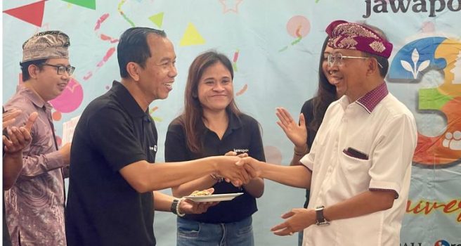 Menutup sambutannya, Gubernur Koster meniup lilin dan memotong kue ulang tahun Jawa Pos TV Bali sebagai simbol sinergi dan harapannya terhadap masa depan media di Bali. Pemimpin Redaksi Jawa Pos TV Bali, Mohammad Ridwan, memberikan apresiasi kepada Gubernur atas kehadirannya. “Semoga kerja sama ini terus memperkuat pembangunan Bali yang berkelanjutan,” ucap Ridwan.