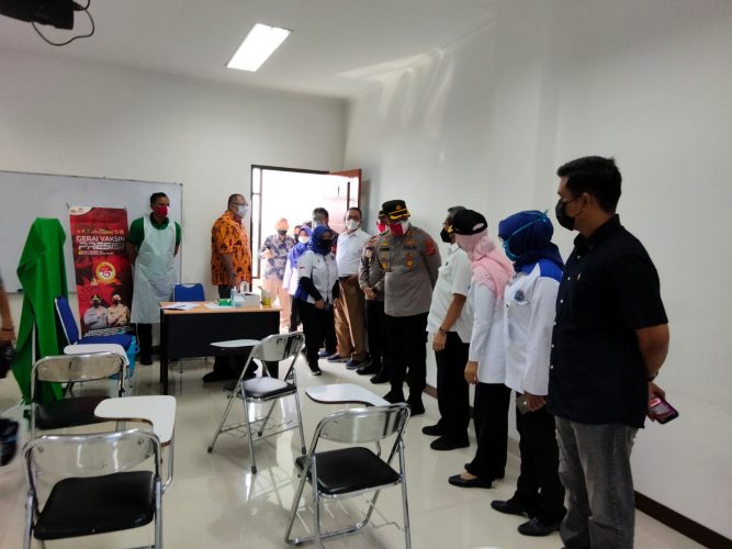 Tangerang, Persindonesia.com – Kapolresta Tangerang Kombes Pol Wahyu Sri Bintoro bersama Sekretaris Daerah Kabupaten Tangerang Maesyal Rasyid meninjau kegiatan vaksinasi di Kampus Universitas Tangerang Raya (Untara) di Perum Sudirman, Kelurahan Tigaraksa, Kabupaten Tangerang, Rabu (25/8/2021).
