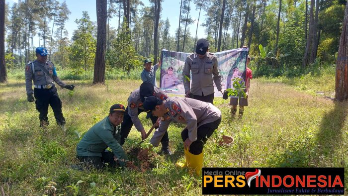Agar selalu menjaga kelestarian lingkungan, bersama – sama menjaga dan merawat pohon yang kita tanam. Mari bersama-sama mencegah dan hindari penebangan liar yang dapat merusak kelestarian lingkungan”, tutup Kapolsek