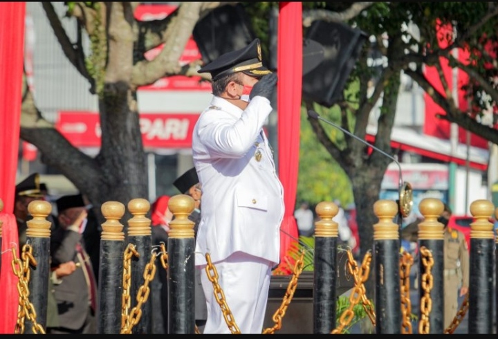 JEMBER, PersIndonesia – Bupati Jember Ir. H. Hendy Siswanto memimpin upacara Hari Ulang Tahun ke 76 Republik Indonesia di Alun-alun Kabupaten Jember, Selasa (17/08/2021).