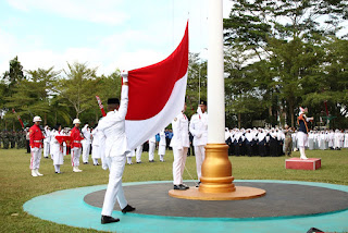 “Kita maknai bersama dengan hadir dan melaksanakan upacara pada hari Kemerdekaan Republik Indonesia untuk mengenang jasa-jasa pahlawan yang telah gugur mendahului kita,” ucapnya.
