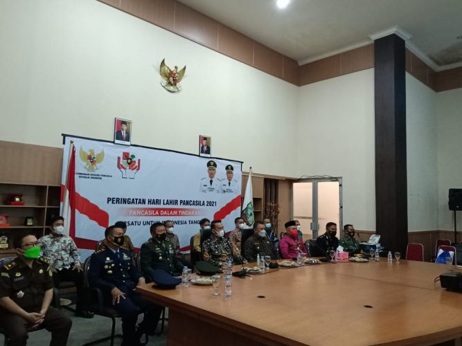 MANGGAR — Upacara Memperingati Hari Lahir Pancasila Secara Virtual Kabupaten Belitung Timur Tahun 2021 dilaksanakan di Ruang Rapat Bupati Belitung Timur,Selasa 01/06/2021.