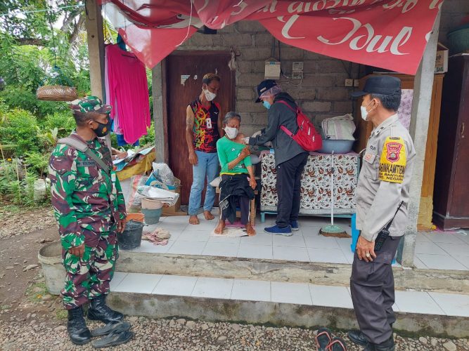Persindonesia.com Jembrana – Konsisten dalam memutus mata rantai penyebaran Covid-19 Babinsa Jajaran Kodim 1617 Jembrana bersama Bhabinkamtibmas dan Instansi terkait lainnya terus turun langsung melakukan Vaksinasi secara door to door ke rumah rumah warga di beberapa titik di Wilayah Kabupaten Jembrana, Hal tersebut dilakukan agar percepatan program Vaksinasi Nasional dapat segera tercapai.
