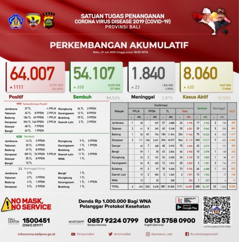 Bali – Informasi perkembangan kasus virus Corona (COVID-19) di Provinsi Bali.