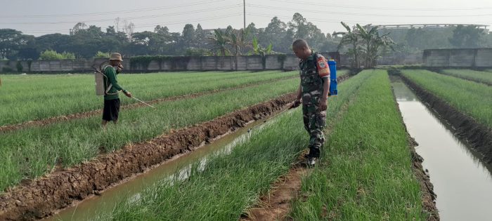 Kodam Jaya, Tangerang,Persindonesia.com – Bukti nyata Dalam mendukung upaya ketahanan pangan diwilayahnya Koramil 02/Btc Kodim 0506/Tgr melakukan perawatan Bibit bawang merah usai panen di lahan sempit.