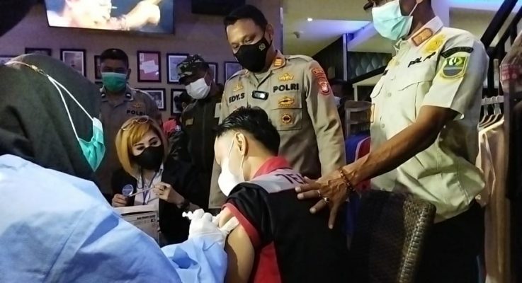 Bekasi,Persindonesia.com – Polsek Tarumajaya laksanakan Vaksinasi keliling dibeberapa tempat hiburan malam di wilayah hukum Polsek Tarumajaya.