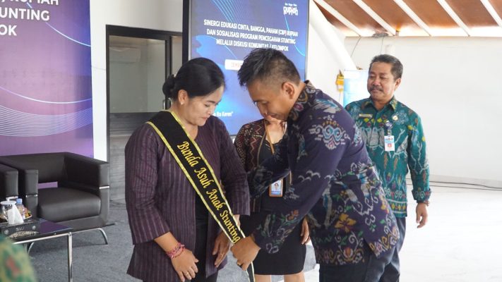 Dikesempatan yang sama juga dikukuhkan Ny. Inda Swari Dewi sebagai Bunda Asuh Anak Stunting Jembrana. Pengukuhan dilakukan langsung oleh Wabup Ipat.