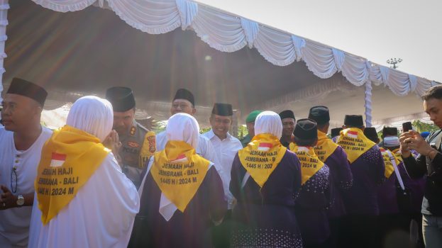 “Peserta Ibadah Haji Kabupaten Jembrana Tahun 2024 secara resmi saya lepas, semoga selamat sampai tujuan di Tanah Suci Mekkah /Saudi Arabia,” ucap Ipat melepas Ibadah Haji.