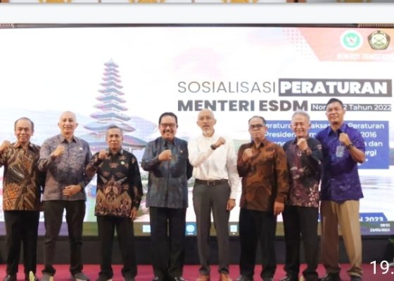 Denpasar – Wakil Gubernur Bali, Tjok. Oka Sukawati menghadiri sosialisasi pelaksanaan peraturan Menteri ESDM No. 12 Tahun 2022 mengenai peraturan pelaksanaan peraturan presiden No. 41 Tahun 2016 tentang tata cara penetapan dan penanggulangan krisis energi dan/atau darurat energi bertempat di kantor PT. PLN (Persero)UID Bali pada Selasa, 23 Mei 2023.