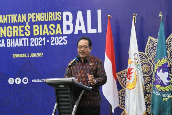Denpasar – Mewakili Gubernur Bali, Wagub Prof. Tjokorda Oka Artha Ardhana Sukawati (Cok Ace) menghadiri acara Pelantikan Pengurus Asosiasi Provinsi Persatuan Sepak Bola Seluruh Indonesia (Asprov PSSI) Bali masa bakti 2021-2025 yang diselenggarakan di Ballroom Vasini Hotel Denpasar, Minggu (5/6/2022).