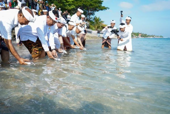 Nusa Penida – Wakil Gubernur Bali Tjokorda Oka Artha Ardhana Sukawati, bersama Bupati Klungkung I Nyoman Suwirta para Organisasi Perangkat Daerah Provinsi Bali dan Kabupaten Klungkung melaksanakan perayaan Rahina Tumpek Uye dengan Upacara Segara Kerthi, yang bertempat di Pura Segara Dalem Ped, Nusa Penida-Klungkung pada Saniscara Kliwon Uye, tanggal 25 Maret 2023.