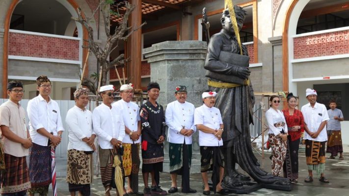 GIANYAR – Wakil Gubernur Bali Prof.Tjokorda Oka Artha Ardhana Sukawati (Cok Ace) bersama Panglingsir Puri Ubud Tjokorda Gde Putra Sukawati dan Bupati Gianyar I Made Mahayastra menyaksikan prosesi penaikan dan pemasangan Patung Tjokorda Gde Agung Sukawati di halaman terbuka Pasar Tematik Ubud, Kabupaten Gianyar. Prosesi penaikan patung yang merupakan perwujudan mendiang ayahanda Wagub Cok Ace itu dilaksanakan pada Kamis (30/3/2023), tepat pada pukul 09.00 wita. Kegiatan menaikkan patung juga disaksikan Tjokorda Gde Raka Sukawati yang merupakan adik dari Wagub Cok Ace. Keberadaan patung ini dimaksudkan untuk mengenang perjuangan Tjokorda Gde Agung Sukawati dalam merintis pariwisata berbasis budaya di Ubud.