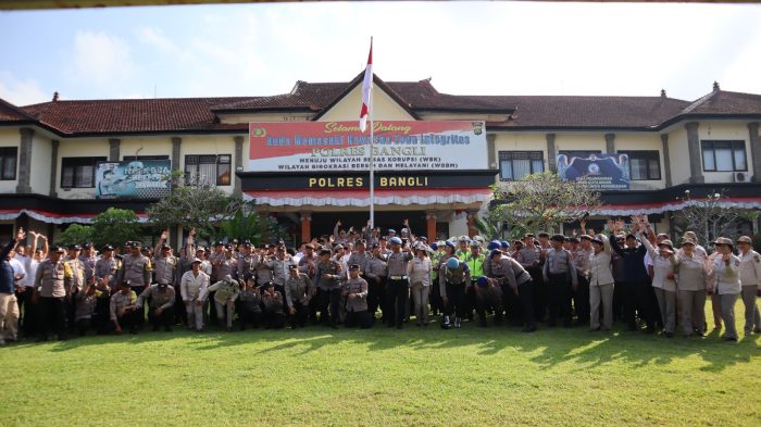 Polres Bangli – Bertempat di Lapangan apel Polres Bangli dilaksanakan apel pagi jam pimpinan yang dipimpin oleh Waka Polres Bangli Kompol I Nyoman Gatra, S.H., M.H dan pelepasan anggota Purna tugas. (31/5/2023).
