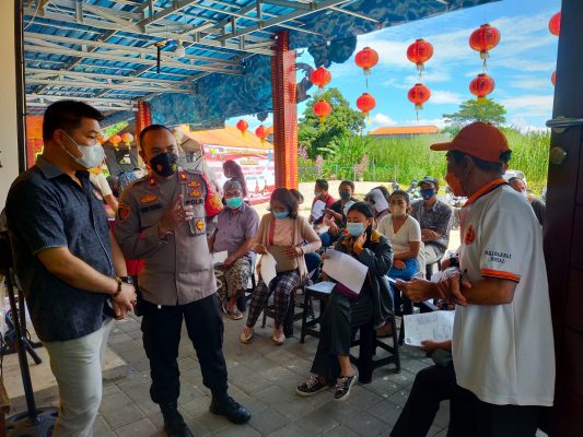 Pada kesempatan tersebut Waka Polresta Denpasar Akbp I Wayan Jiartana., S. IK., M. Si. memantau jalanya kegiatan vaksinasi untuk memastikan dapat berjalan dengan tertib dan lancar.