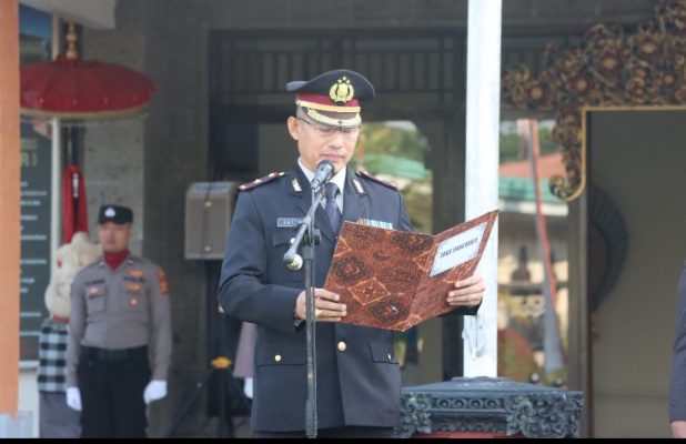 Waka Polres Bangli Kompol Nyoman Gatra SH., MH membacakan amanat Presiden RI diawali dengan pemaparan Pancasila dan nilai nilai yang dikandung merupakan falsafah dasar, pandangan hidup bangsa dasar negara idiologi, kekuatan pemersatu bangsa dan sumber dari segala sumber hukum negara.