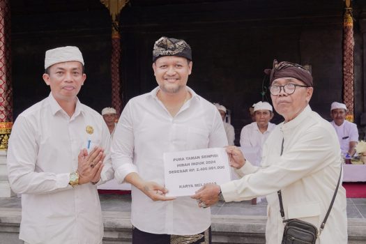 Pada kesempatan tersebut, Wabup Bagus Alit Sucipta menyerahkan bantuan dana hibah dari Anggaran Induk 2024 sebesar Rp. 2,4 miliar serta punia senilai Rp. 10 juta, yang diterima langsung oleh Prajuru Pura. Bantuan ini diharapkan dapat mempercepat proses pembangunan dan pelestarian Pura Taman di Br. Tengah.
