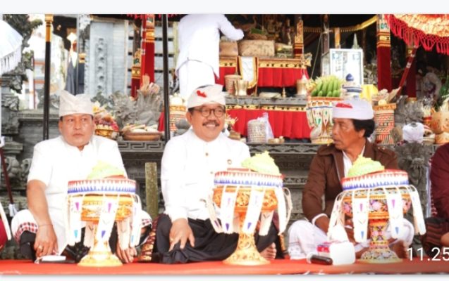 Kintamani – Wakil Gubernur Bali Prof. Tjokorda Oka Artha Ardana Sukawati menghadiri Karya Melaspas Mupuk Pedagingan di Pura Bale Agung Drsa Adat Seraii , Kintamani Bangli , Rabu (2/11)