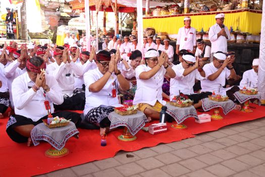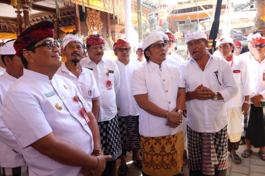 TABANAN – Wakil Gubernur Bali, I Nyoman Giri Prasta, menghadiri dan berdoa dalam Karya Agung Mamungkah, Ngenteg Linggih, Ngusaba Desa, serta Tawur Balik Sumpah Agung di Pura Khayangan Desa, Pura Desa Wanasari, Tabanan, pada Rabu (2/4).