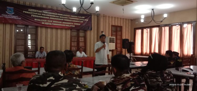 Virgo Antonius Sembiring Kepala Bidang Politik Dalam Negeri dan Organisasi Kemasyarakatan pada Badan Kesatuan Bangsa dan Politik (Kesbangpol) Kota Tangerang Selatan (Tangsel) mengatakan,banyaknya persoalan ormas yang bermacam-macam seperti perebutan wilayah dan konflik internal organisasi.