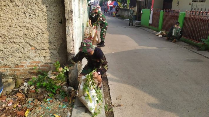 Kodam Jaya, Tangerang,Persindonesia.com- Anggota koramil 06/Cibodas, Kodim 0506/Tgr Serda Darkoni bersama warga RT 01/02 Kelurahan Alam Jaya Kecamatan Jatiuwung gotong royong bersih – bersih lingkungan, Kamis (16/02/2023).