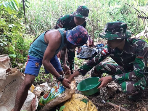 Sementara itu, bapak Raymond Onangge (33) salah satu warga yang sehari-hari membuat sagu, merasa bangga usaha yang telah lama digelutinya dikunjungi sekaligus dibantu Satgas dalam mengolah pohon sagu dan mengucapkan terimakasih atas perhatian dan kepedulian Satgas yang turut memberikan pemahaman untuk meningkatkan hasil panen dan juga agar bahan baku dialam jangan sampai punah.